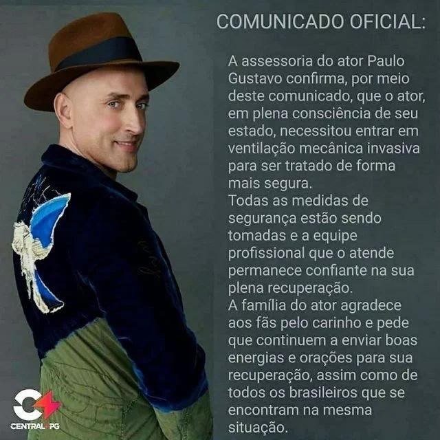 O ator paulo gustavo segue internado em um hospital no rio de janeiro, onde é submetido ao tratamento da covid.